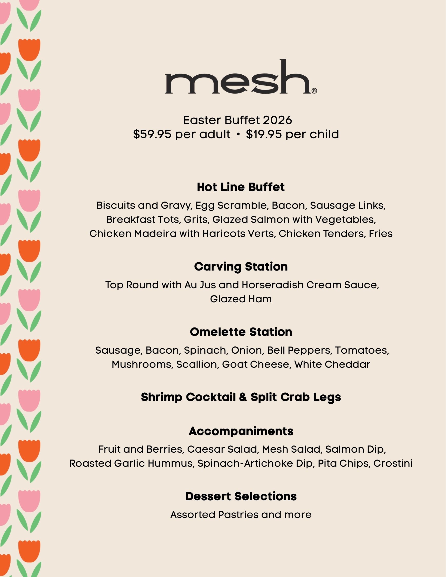 Make your reservation today to secure your spot for an unforgettable Easter brunch.